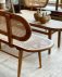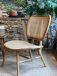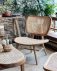 Low armchair with natural color teak structure. Its back and seat are finished in natural grid. Dimensions: 70x61x80