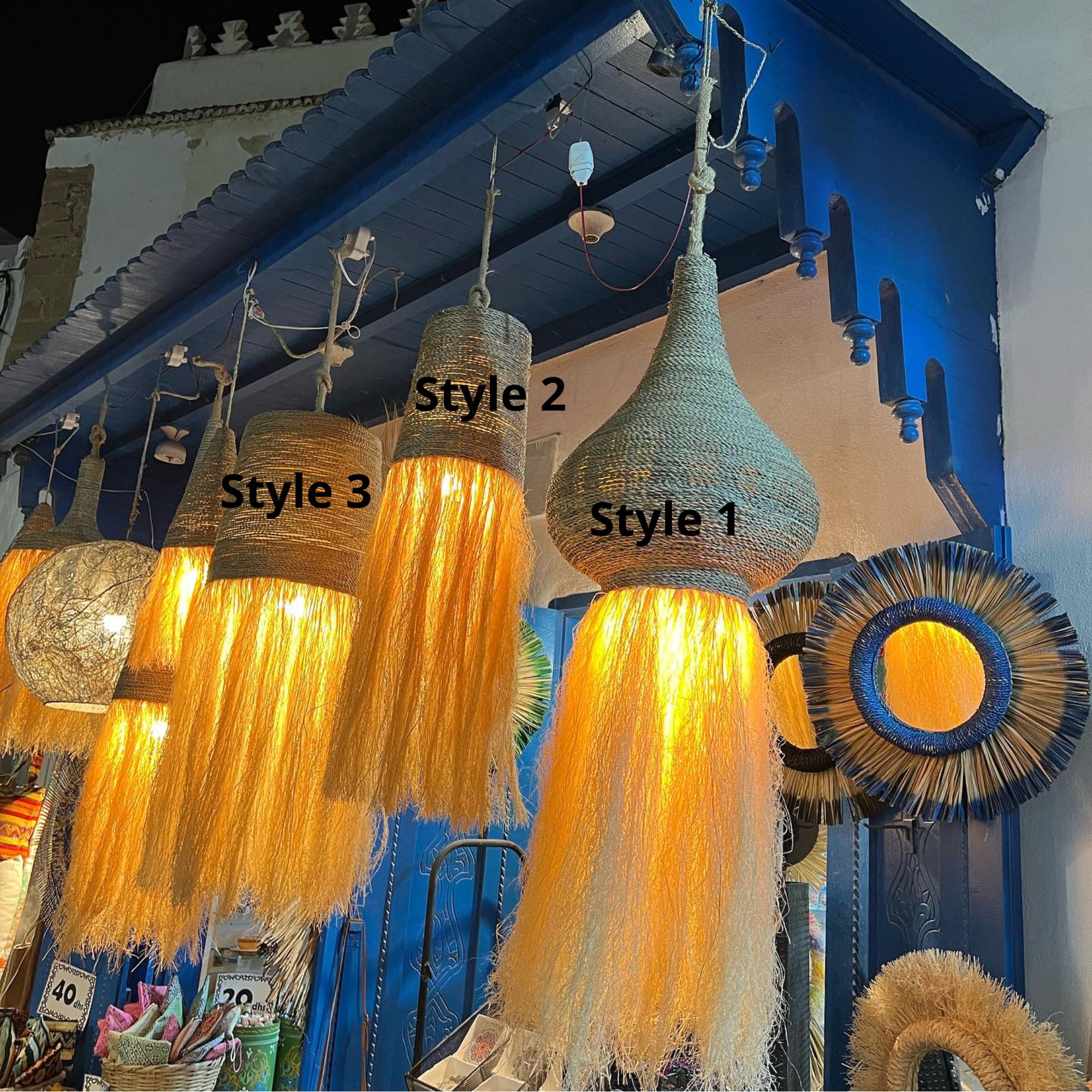 SKU: N/A Category: Pendant Lights Tags: artisanal lamp, banana bark lamp, bohemian home decor, boho pendant light, eco-friendly lighting, handmade lampshade, handmade lighting Morocco, lampe en raphia, lampshade natural, Morocco crafts, natural pendant lamp, palm leaf lampshade, raffia suspension, rustic boho decor, tropical decor