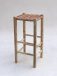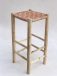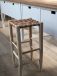 This Moroccan stool featuring a seat made of flat woven leather straps and a natural wood frame. The high stool could also double as a side table.