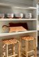 Handmade and woven on eucalyptus wood, the leather stools are very sustainable and have an organic feel to them.
